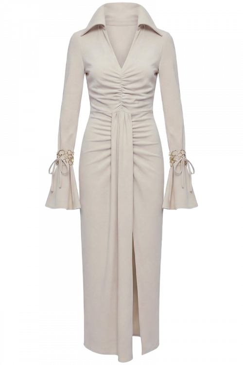 Zračeći bezvremenskom elegancijom, haljina "Ivory Grace" savršen je izbor za sofisticirane i posebne trenutke. Ova duga haljina u nježno bijeloj ivory nijansi ističe profinjenost kroz jednostavan, ali efektan kroj. Srcoliki izrez naglašava dekolte, dok istaknuta mašna na struku dodaje ženstvenu i romantičnu notu. Lepršavi slojevi tkanine stvaraju lagan i graciozan pokret, idealan za vjenčanja, gala večere ili svečane zabave.