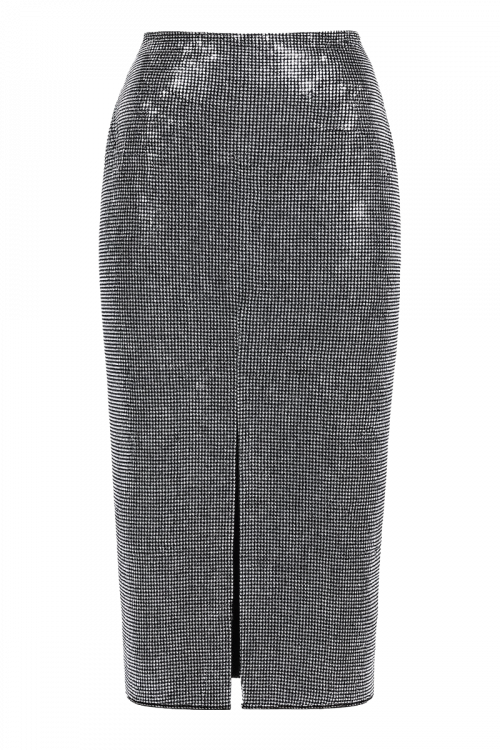 Suknja "Eternal Sparkle" unikatni je komad dizajniran za one koji žele biti u centru pažnje. Izrađena od materijala prekrivenog blistavim šljokicama, ova suknja reflektira svjetlost na najljepši način, stvarajući efekt glamura pri svakom koraku. Pencil krojem, elegantno prati liniju tijela, dok diskretni prorez omogućava lakoću pokreta. Idealna za gala večeri, koktel zabave i svečane prigode.