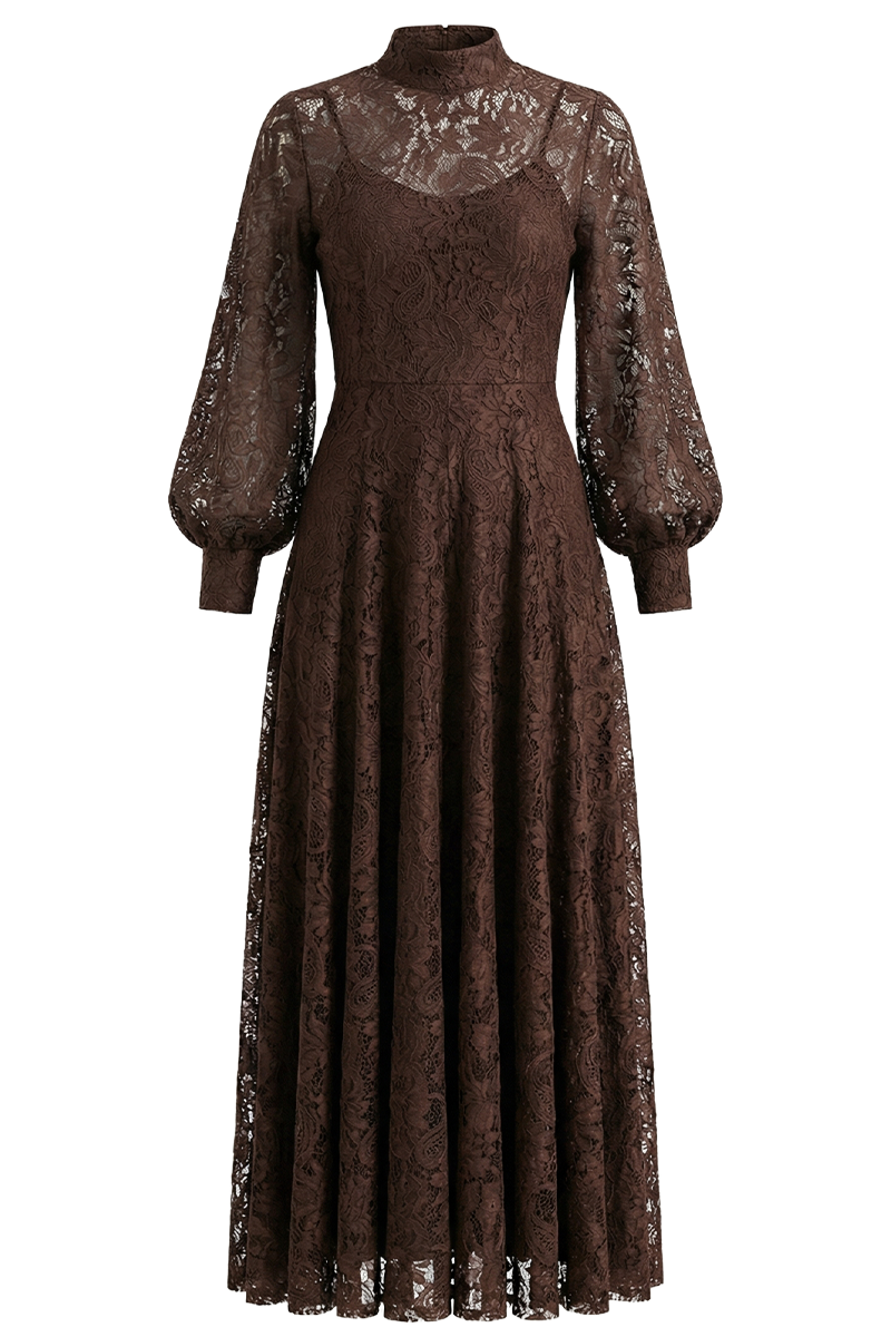 Belle Caramel je haljina koja spaja toplinu smeđe nijanse s bezvremenskom elegancijom čipke. Ovaj model ističe profinjenu siluetu zahvaljujući midi dužini i lagano lepršavom A-kroju, dok visoki ovratnik i raskošni balon-rukavi stvaraju dojam sofisticiranosti inspirirane francuskim stilom. Čipka prekrasno oblikuje tijelo bez pretjerane formalnosti, a kako bi se osigurala potpuna udobnost i diskrecija, haljina dolazi s odvojenom podhaljinom koja omogućuje da model bude neproziran i savršeno funkcionalan. Upravo zato Belle Caramel je idealan izbor za dnevne svečanosti, poslovne evente, obiteljska okupljanja i sve trenutke kada želite izgledati posebno, ali odmjereno. U kombinaciji s remenom, beretkom ili minimalističkim nakitom, postaje istinska definicija chic elegancije.