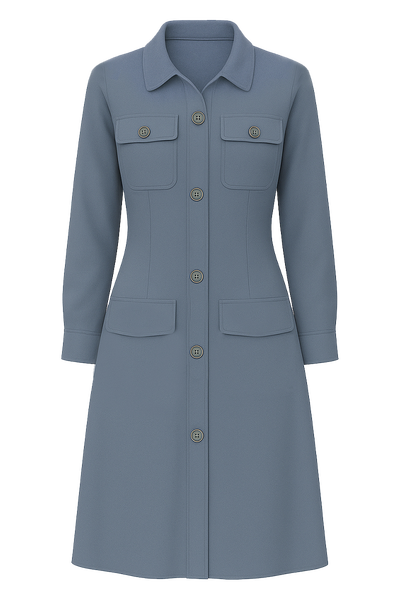 Haljina "Executive Edge" savršen je spoj funkcionalnosti i stila, idealna za moderne žene koje cijene profinjen izgled. Inspirirana klasičnim krojem, s dugmadima cijelom dužinom i praktičnim džepovima, ova haljina ističe vašu profesionalnu eleganciju. Dolazi u tri klasične nijanse: crnoj, tamnosivoj i sivoj, pružajući fleksibilnost za poslovne i formalne prigode. Svojom strukturalnom siluetom i detaljima poput elegantnog ovratnika, unosi dozu sofisticiranosti u svaku garderobu.