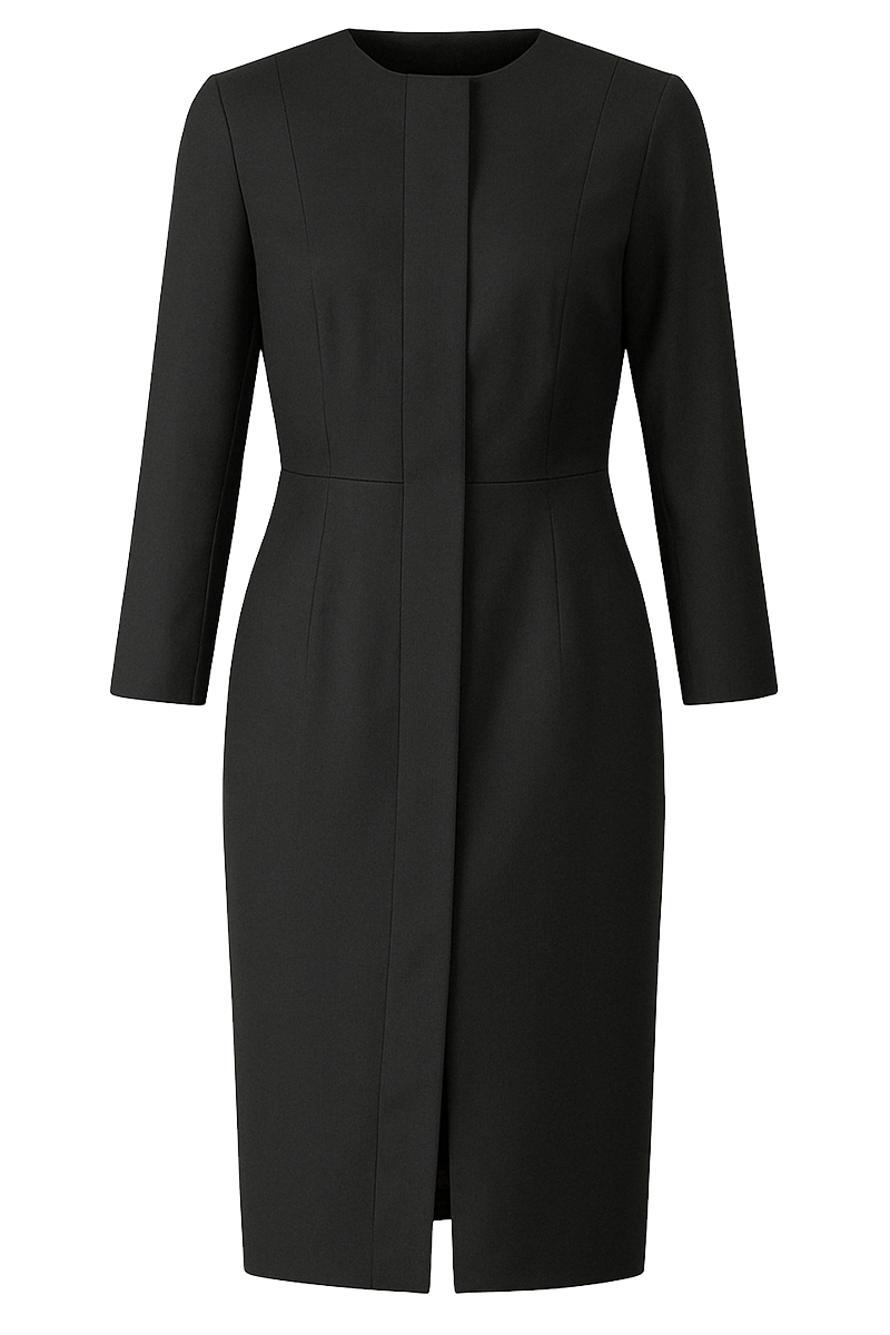 Haljina "Metropolitan Poise" savršeno utjelovljuje modernu poslovnu eleganciju. Minimalistički kroj s naglaskom na čiste linije i profinjene detalje stvara sofisticiran izgled idealan za formalne prilike i poslovne događaje. Dostupna u klasičnim nijansama crne, tamnosive i sive, ova haljina nudi bezvremensku fleksibilnost i jednostavno se prilagođava različitim stilovima i kombinacijama.
