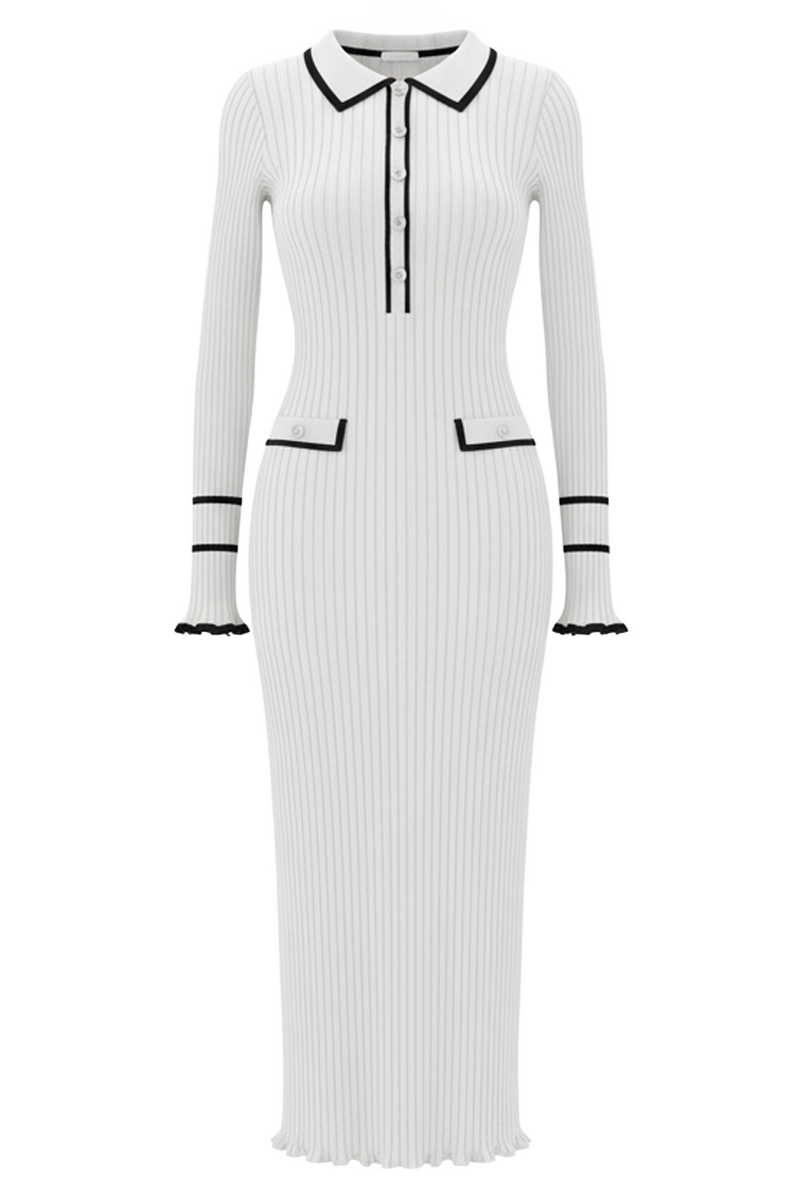 Haljina "Timeless Chic" predstavlja savršen spoj elegancije i sofisticiranosti. Sa svojom profinjenom linijom, decentnim kontrastnim detaljima i klasičnim gumbima, ova haljina idealan je izbor za poslovne prilike, večernje izlaske ili svečane događaje. Dostupna u više boja, omogućava da pronađete savršenu nijansu koja odgovara vašem stilu i osobnosti. Kroj naglašava figuru, dok suptilni detalji dodaju notu prefinjenosti.