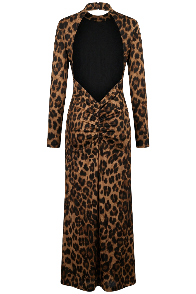 Večernja haljina Calixa Veil ističe se sofisticiranom elegancijom i snažnim vizualnim dojmom. Usko strukirana silueta naglašava liniju tijela, dok dugačka forma daje haljini profinjenu, večernju notu. Prednji dio ostaje minimalističan i čist, dok stražnji dio otkriva otvorena leđa s efektnim nabiranjem koje stvara suptilan dramatični kontrast.