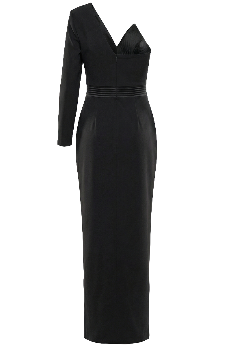 Naglašeni struk oblikuje siluetu i stvara skladan, izdužen izgled, dok čiste linije i minimalistički dizajn daju haljini bezvremenski karakter. Otvorena ramena i precizno krojena forma čine ovaj model idealnim izborom za gala večeri, svečane evente i posebne prilike kada želite ostaviti snažan dojam.