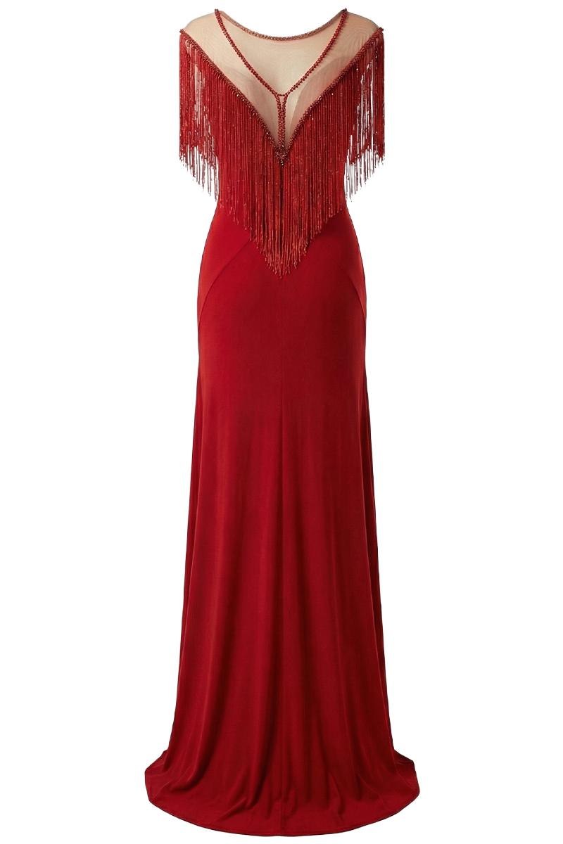 Večernja haljina Midnight Rhythm stvorena je za trenutke kada pokret postaje umjetnost. Ovaj glamurozni model sirena siluete prati liniju tijela i naglašava figuru, dok raskošne resice na gornjem dijelu stvaraju dinamičan efekt pri svakom koraku.