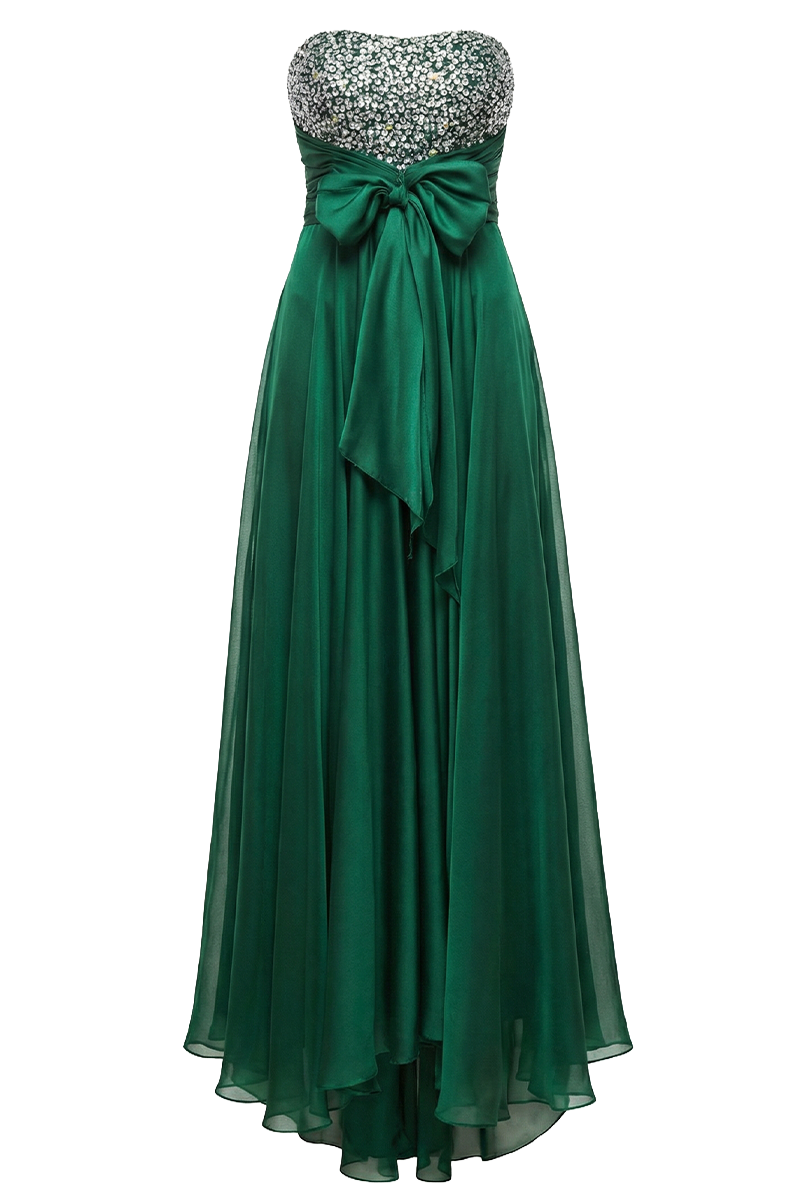 Donji dio haljine je lepršava maksi suknja od laganog, fluidnog materijala koji prati pokret i stvara elegantnu vertikalu. Stražnji dio ostaje otvoren i ženstven, s diskretnim naglaskom na liniju leđa.