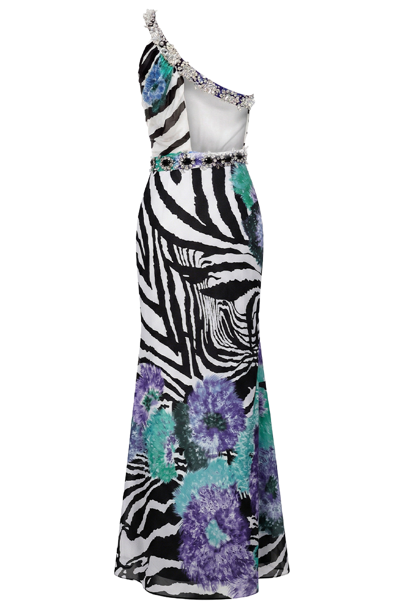 Večernja haljina Wild Orchid predstavlja hrabru, modno samouvjerenu interpretaciju večernje elegancije. Spoj animal uzorka i raskošnih floralnih motiva stvara snažan vizualni identitet, dok precizno oblikovana silueta zadržava sofisticiranost.