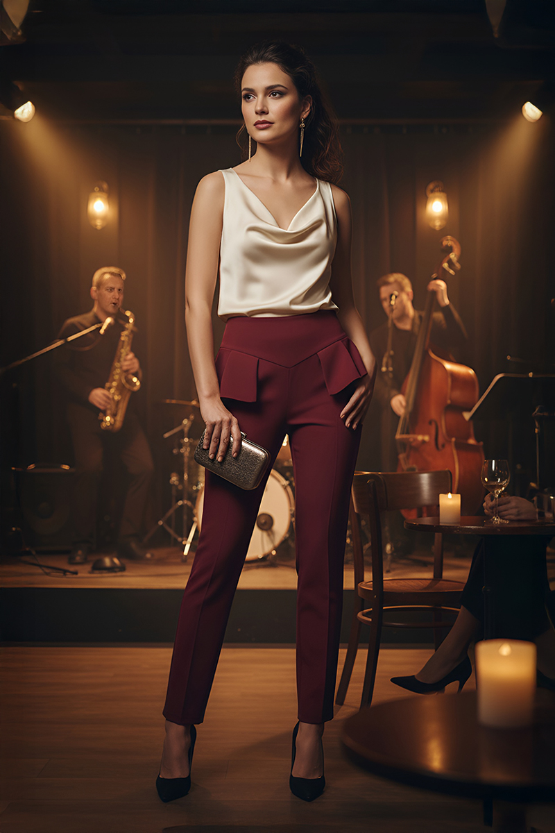 Hlače "Sophistiqué Icon" donose sofisticiranost i jedinstven dizajn koji privlači pažnju. S visokim strukom i modernim detaljima poput voluminoznih prednjih džepova, savršeno naglašavaju vašu siluetu. Izrađene od kvalitetnih materijala, idealne su za poslovne kombinacije, kao i elegantne večernje izlaske. Naglasite svoju eleganciju uz hlače koje odišu stilom i samopouzdanjem.