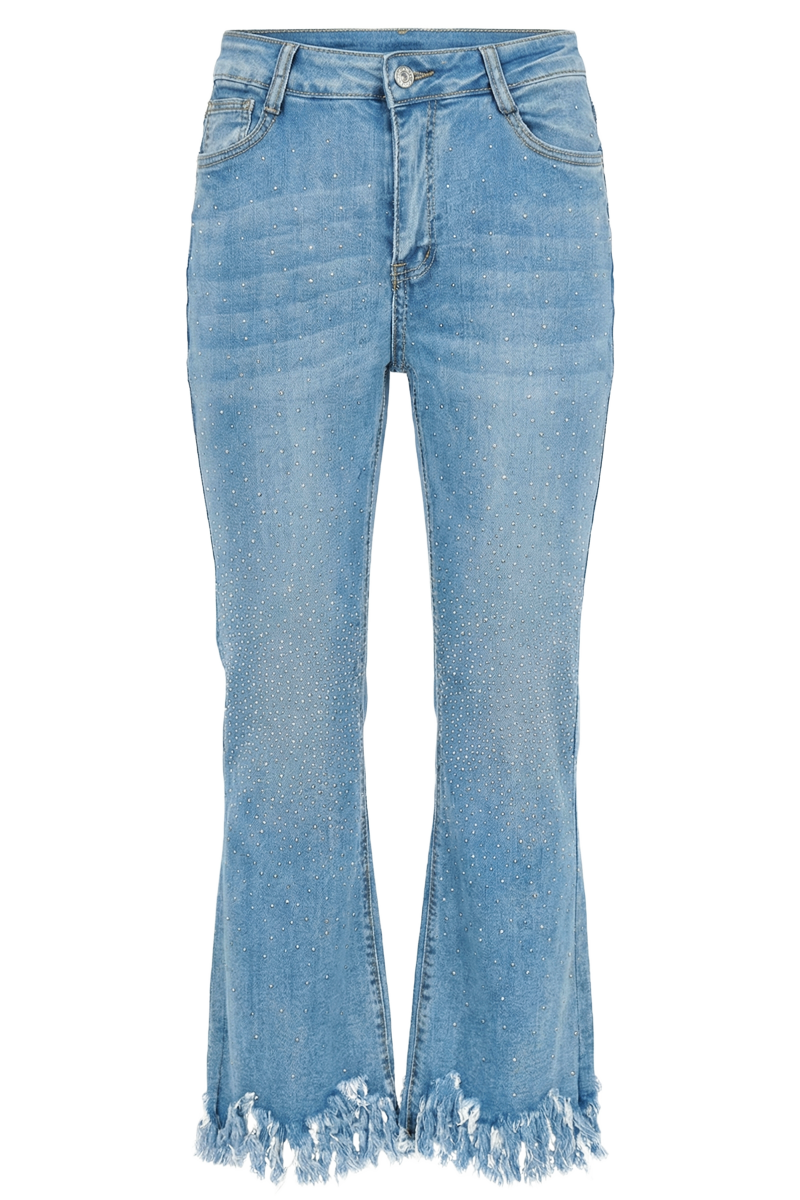 Traperice Midnight Fringe donose spoj klasičnog trapera i suptilnog glamura kroz decentni sjaj sitnih kristalnih detalja i efektan resasti porub. Tamnoplava nijansa daje im bezvremenski karakter, dok lagano suženi kroj prati liniju tijela i izdužuje siluetu. Posebnost ovog modela je razigrani završetak nogavica s resama koji unosi dozu urbanog chica i čini ove traperice idealnim izborom za dnevne outfite s karakterom, ali i večernje kombinacije uz elegantan top ili sako. Midnight Fringe savršene su za žene koje vole traper s pomakom i detaljem koji se primjećuje, ali ostaje sofisticiran.