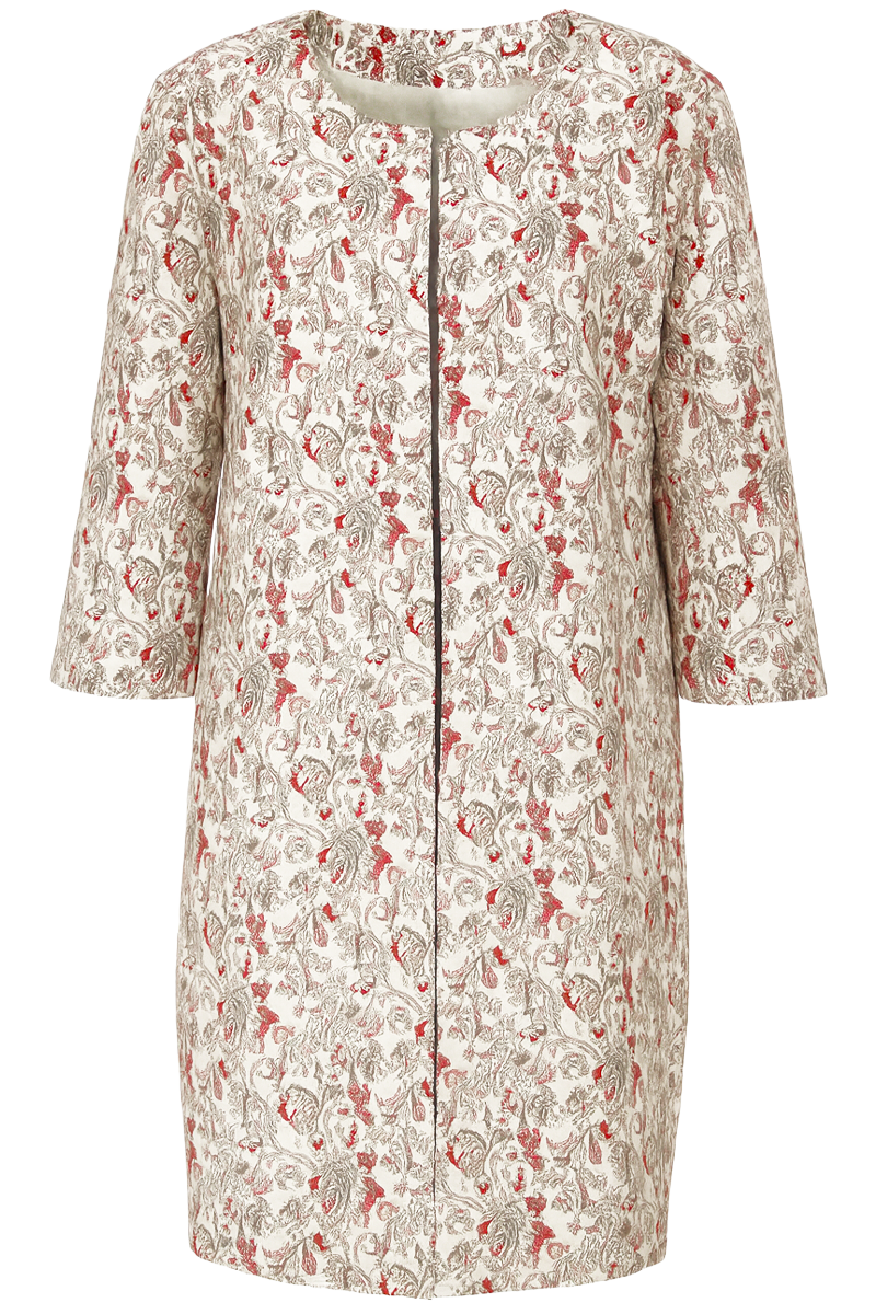 Baloner "Floral Legacy" utjelovljuje bezvremensku eleganciju i bogatu teksturu zahvaljujući materijalu od visokokvalitetnog brokata. Ovaj sofisticirani komad odlikuje se suptilnim cvjetnim uzorkom u toplim nijansama, što ga čini savršenim odabirom za prijelazna godišnja doba i posebne prilike. Minimalistički kroj i lagani sjaj tkanine daju mu luksuzni i profinjeni izgled.