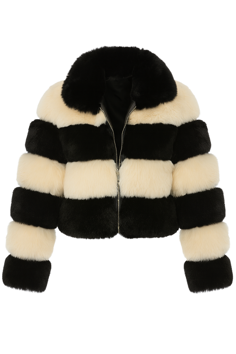 Krznena jakna "Winter Glow" predstavlja spoj luksuza i jedinstvenog stila. Izrađena od visokokvalitetnog umjetnog krzna u crno-bijelim prugama, ova jakna unosi dozu drame i sofisticiranosti u svaki outfit. Zahvaljujući svojoj toplini i mekoći, idealna je za hladne zimske dane, dok moderan dizajn čini ovu jaknu savršenim izborom za sve koji žele istaknuti svoj stil.