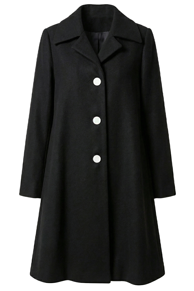 Dužina iznad koljena omogućuje praktičnost i lako kombiniranje, čineći ovaj kaput idealnim izborom za poslovne kombinacije, svakodnevne outfite i sofisticirane gradske šetnje. Kvalitetna vunena struktura zadržava formu i osigurava ugodan osjećaj tijekom cijelog dana.