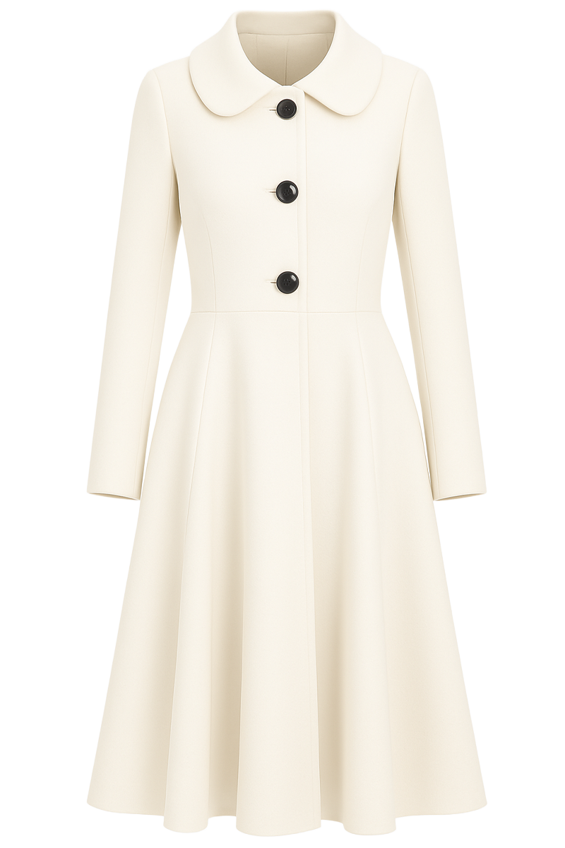 Kaput "Snow Veil" utjelovljenje je klasične elegancije i ženstvenog šarma. Izrađen od 100% visokokvalitetne vune, pruža vrhunsku toplinu i udobnost tijekom hladnijih dana. Fino krojen s naglašenim strukom i raskošnim klasičnim ovratnikom, ovaj kaput idealan je za sve prigode – od svečanih izlazaka do svakodnevnih šetnji. Predivna nijansa slonovače savršeno nadopunjuje bezvremenski dizajn, dok ukrasni gumbi dodaju notu sofisticiranosti.