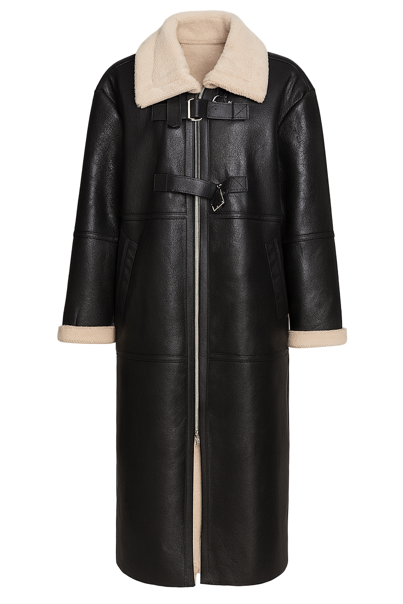 Kaput "Arctic Edge" savršen je spoj klasičnog avijatičarskog stila i suvremenog dizajna, idealan za hladne zimske dane. Izrađen od visokokvalitetne umjetno kožne tkanine s toplom podstavom od umjetnog krzna, ovaj model pruža vrhunsku zaštitu i udobnost. Detalji poput velikog ovratnika, remena i kontrastnih tekstura naglašavaju njegovu sofisticiranu estetiku. Kaput je savršen za ljubitelje bezvremenskog stila s modernim dodirom.