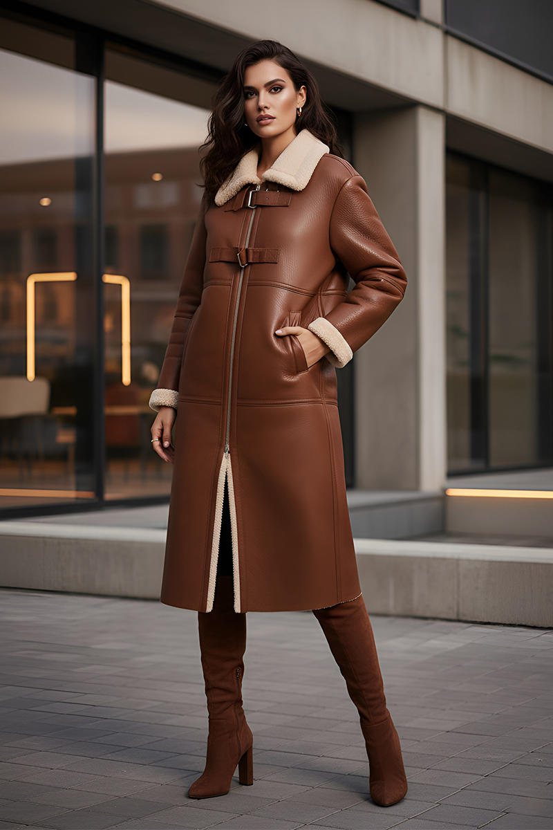 Kaput "Arctic Edge" savršen je spoj klasičnog avijatičarskog stila i suvremenog dizajna, idealan za hladne zimske dane. Izrađen od visokokvalitetne umjetno kožne tkanine s toplom podstavom od umjetnog krzna, ovaj model pruža vrhunsku zaštitu i udobnost. Detalji poput velikog ovratnika, remena i kontrastnih tekstura naglašavaju njegovu sofisticiranu estetiku. Kaput je savršen za ljubitelje bezvremenskog stila s modernim dodirom.