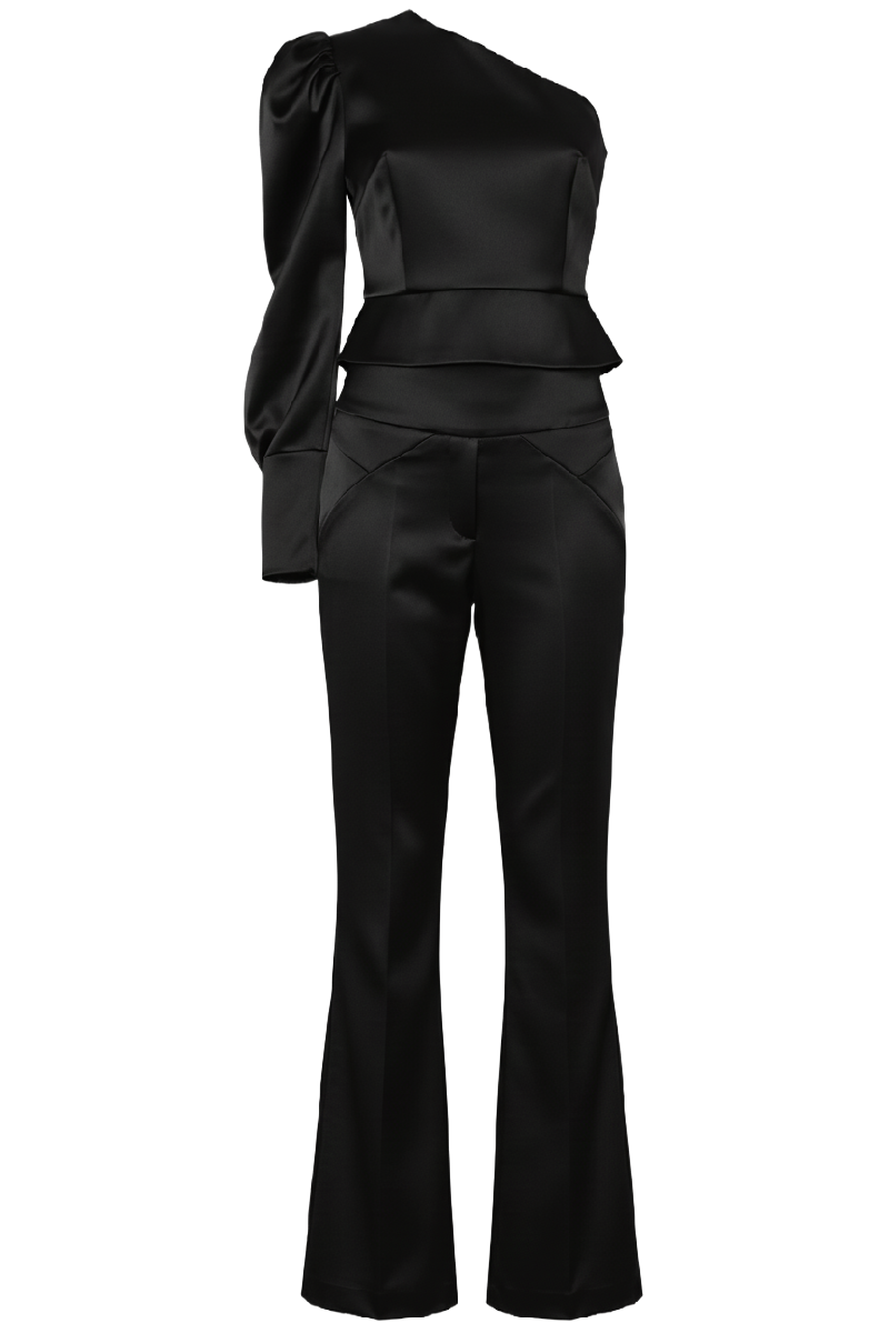 Komplet "Modern Muse" odiše sofisticiranošću i modernim stilom, savršen za svečane prigode ili elegantne večernje izlaske. Kombinacija hlača višeg struka i asimetričnog topa s jednim rukavom stvara jedinstveni izgled koji privlači pažnju. Izrađen od visokokvalitetnih materijala, ovaj komplet dolazi u više boja, omogućujući izbor prema vašem osobnom stilu.