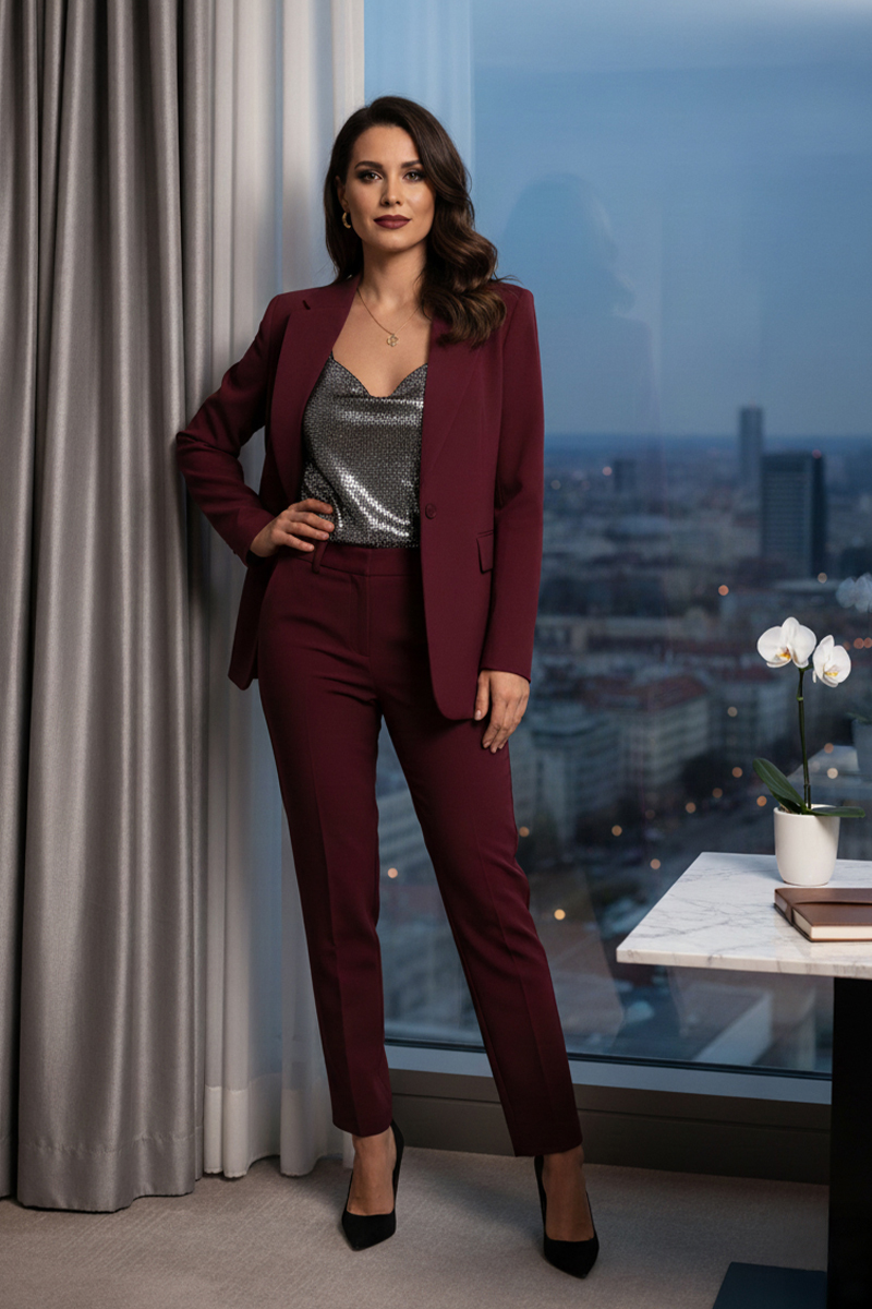 Odijelo "Elegant Momentum" savršeni je spoj profinjenosti i suvremenog stila. Izrađeno od visokokvalitetnog materijala, ovo odijelo osigurava besprijekoran izgled i udobnost tijekom cijelog dana. Klasičan kroj hlača i jakne naglašava eleganciju, dok raznolike boje omogućuju prilagodbu osobnom stilu. Idealno za poslovne prilike, svečane događaje ili sofisticirani dnevni izgled.
