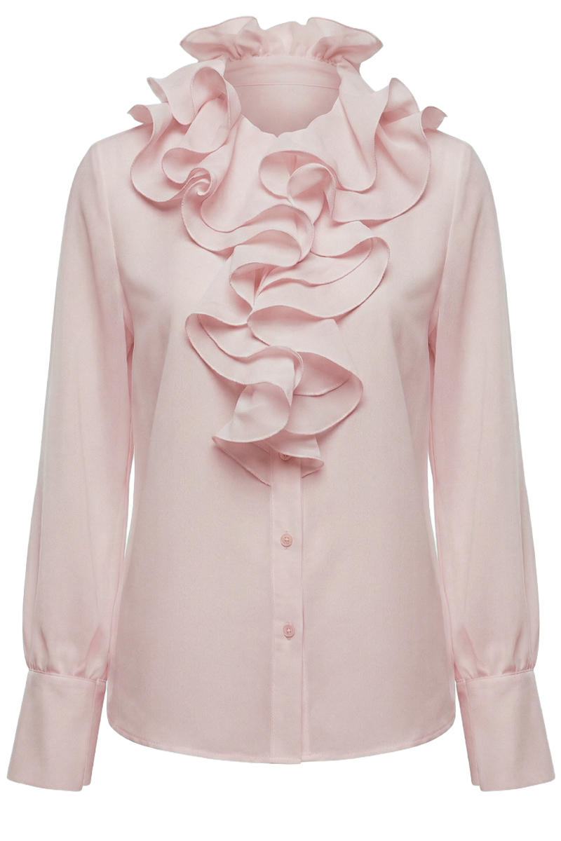 Gentle Flow je elegantna ženska bluza profinjenog dizajna, osmišljena za bezvremenske i sofisticirane kombinacije. Raskošni volani uz prednji dio i ovratnik stvaraju fluidan, ženstven izgled, dok klasičan kroj osigurava lakoću nošenja i urednu siluetu. Izrađena od 100% žoržet svile, ova bluza pruža osjećaj lakoće i uglađenosti, čineći je idealnim izborom za poslovne outfite, svečane prilike ili elegantne dnevne kombinacije. Lako se uklapa uz hlače, suknje ili ispod sakoa, zadržavajući uvijek profinjen dojam. Bluza Gentle Flow suptilna je elegancija s izraženim karakterom.