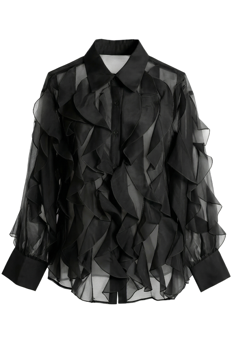 Pearl Ruffle bluza donosi spoj elegancije, umjetničkog dizajna i profinjenog sjaja. Izrađena od laganog, blago sjajnog materijala, ova košulja osvaja već na prvi pogled — no najveći naglasak nose dramatični višeslojni rukavi koji stvaraju efekt bisernih volana i pružaju raskošan, couture dojam. Dizajnirana za žene koje obožavaju izraziti svoj stil, Pearl Ruffle je istovremeno glamurozna i nosiva. Savršena je za svečane kombinacije, večernje izlaske, poslovne evente ili trenutke kada želiš izgledati posebno bez pretjeranog truda. Blago oversized kroj i elegantna silueta čine je udobnom i fluidnom, dok biserni gumbi dodaju završni luksuzni pečat. U kombinaciji s elegantnim hlačama, suknjom visokog struka ili minimalističkim nakitom, ova košulja pretvara svaku odjevnu kombinaciju u modnu izjavu.