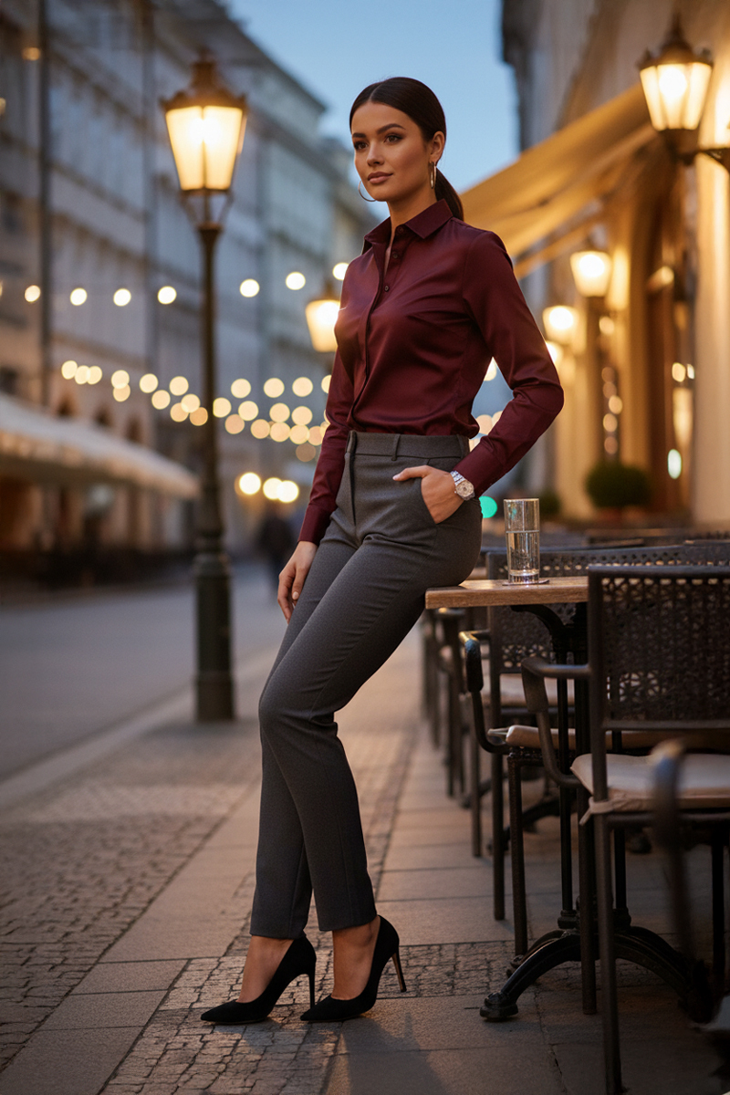Košulja "Classic Harmony" donosi savršen balans između klasičnog dizajna i modernog stila. Njezine elegantne linije i ugodan kroj čine je idealnim izborom za sve prilike, od poslovnih do ležernih. Jednostavnost i sofisticiranost kombinirane su kako bi naglasile vašu profinjenost. Kvalitetna tkanina ugodna na dodir i jednostavna za održavanje. Klasičan s modernim detaljima koji naglašavaju struk. Savršena za poslovne sastanke, svakodnevne obaveze i večernje izlaske.