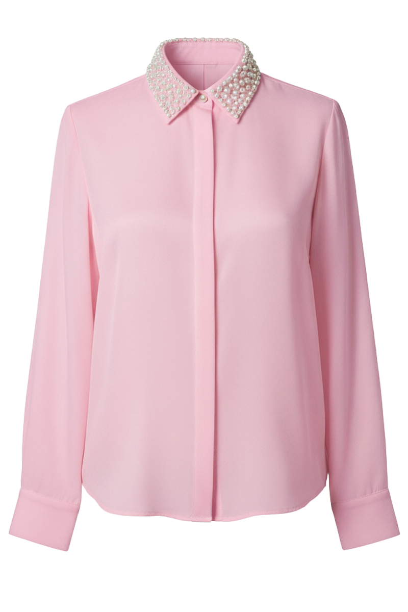 Košulja "Pearl Delight" odiše elegancijom i profinjenošću, savršena za žene koje vole sofisticiran stil. Izrađena od luksuznog materijala, ova košulja ima prepoznatljiv dizajn s detaljima bisera ovratniku, koji dodaju suptilan, ali upečatljiv dodir glamura. Savršeno pristaje za svečane prilike, poslovne outfite ili chic dnevne kombinacije. Košulja "Pearl Delight" je pravi izbor za žene koje žele kombinaciju elegancije i praktičnosti.