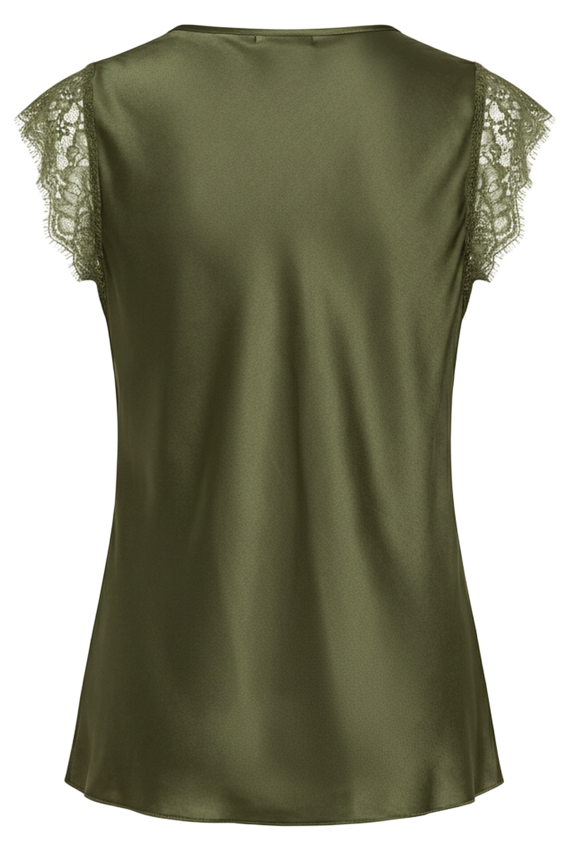 Lace Harmony je elegantan i profinjen top koji spaja glatku, laganu svilenu teksturu i nježne čipkaste detalje u skladan i ženstven dizajn. V-izrez naglašen čipkom diskretno ističe siluetu, dok čipkasti rukavi dodaju sofisticiranu notu i osjećaj lakoće. Ovaj top idealan je za večernje kombinacije, posebne prigode ili elegantnije dnevne outfite. Lako se kombinira s hlačama, suknjama ili ispod sakoa, čineći ga svestranim komadom koji unosi profinjenost u svaki stil. Lace Harmony naglašava eleganciju bez pretjerivanja, savršeno balansirajući romantiku i suvremeni dizajn.