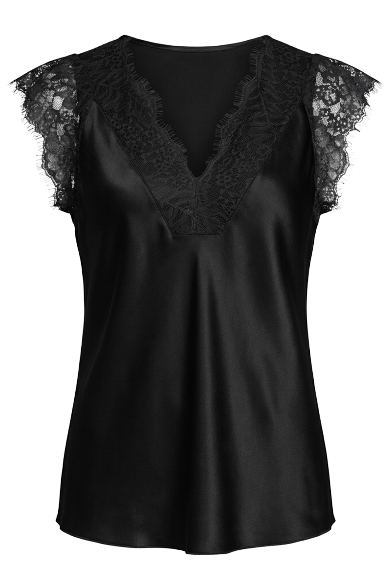 Lace Harmony je elegantan i profinjen top koji spaja glatku, laganu svilenu teksturu i nježne čipkaste detalje u skladan i ženstven dizajn. V-izrez naglašen čipkom diskretno ističe siluetu, dok čipkasti rukavi dodaju sofisticiranu notu i osjećaj lakoće. Ovaj top idealan je za večernje kombinacije, posebne prigode ili elegantnije dnevne outfite. Lako se kombinira s hlačama, suknjama ili ispod sakoa, čineći ga svestranim komadom koji unosi profinjenost u svaki stil. Lace Harmony naglašava eleganciju bez pretjerivanja, savršeno balansirajući romantiku i suvremeni dizajn.