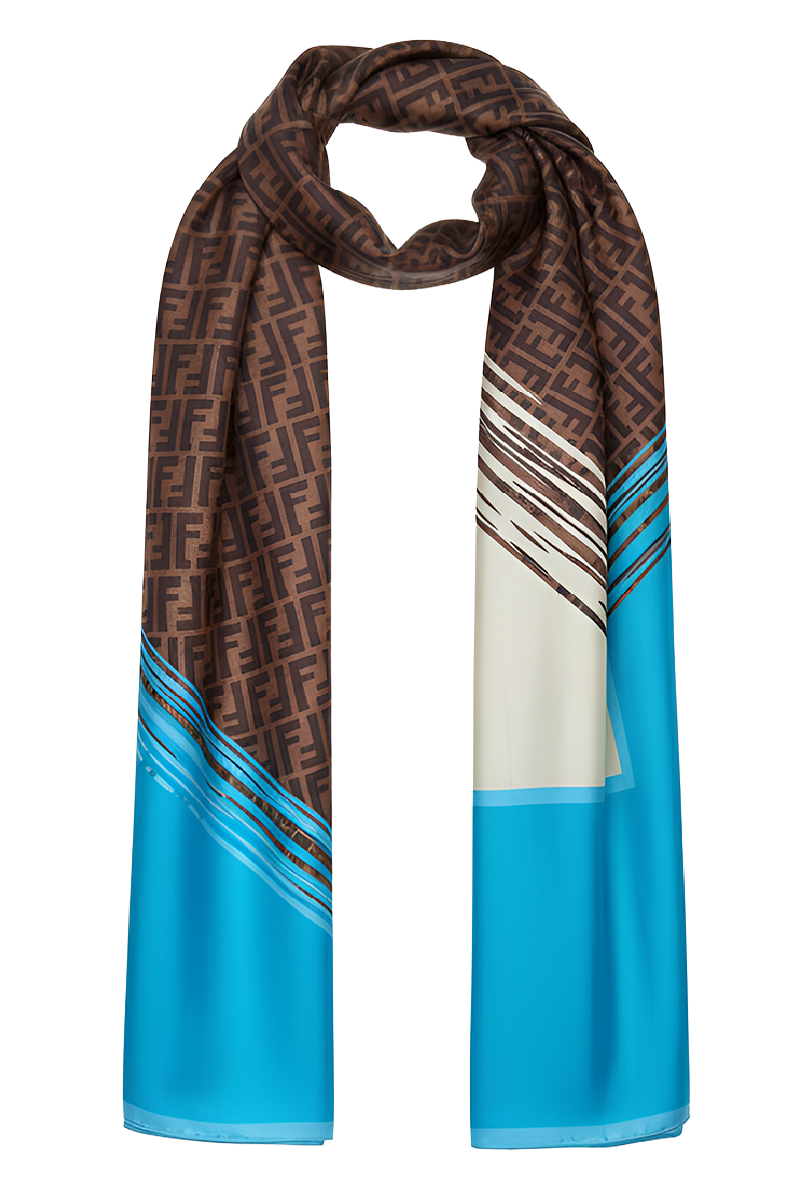 Svileni šal "Ocean Luxe" spaja luksuznu teksturu svile s efektom snažnih kontrasta. Smeđi monogram uzorak kombiniran s vibrantnim plavim i bijelim tonovima daje mu dinamičan i moderan karakter. Idealan je za one koji žele naglasiti svoju originalnost i stil. Može se nositi na različite načine – elegantno omotan oko vrata, preko ramena za ležerniji izgled ili kao atraktivan dodatak torbi. Njegova paleta boja čini ga savršenim izborom za ljetne outfite, putovanja i urbane modne kombinacije.
