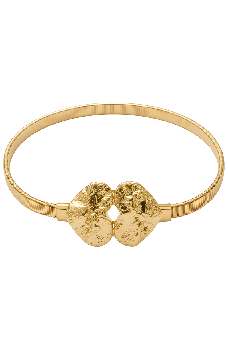 Ukrasni remen Eternal Bond utjelovljuje snagu povezanosti i eleganciju jednostavnosti. Njegova skulpturalna kopča u obliku dva spojena oblika simbolizira sklad između modernog dizajna i bezvremenskog stila. Izrađen od kvalitetnog, fleksibilnog materijala koji savršeno prianja uz liniju tijela, ovaj remen ističe se sofisticiranim sjajem i umjetničkim karakterom. Dostupan u zlatnoj i srebrnoj varijanti, Eternal Bond predstavlja idealan dodatak za one koji u svakom detalju traže simboliku i estetiku. Eternal Bond – jer istinska elegancija traje vječno.