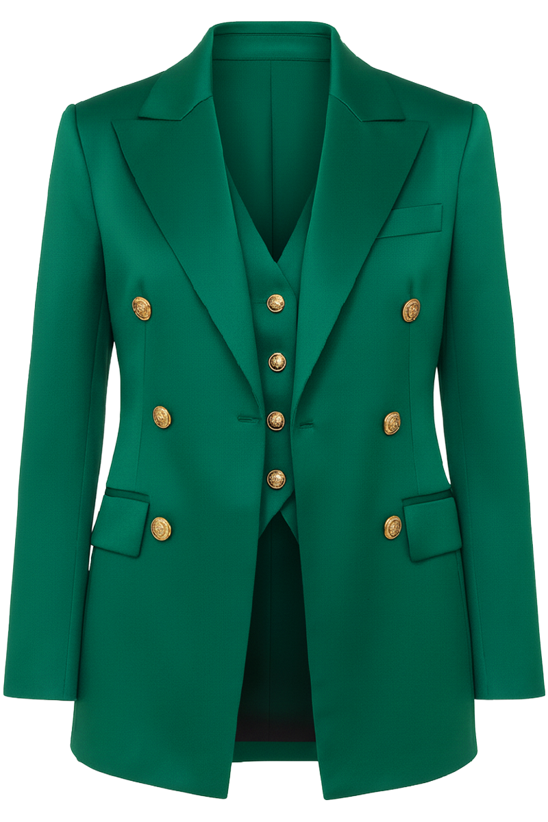Duži sako s prslukom "Aristo Set" unosi dozu elegancije i profinjenosti u vašu garderobu. Duži sako savršeno se uklapa s elegantnim prslukom, čineći ovaj set idealnim izborom za formalne i svečane prilike. Dizajniran s naglaskom na sofisticiranost, sako je krojen s preciznošću, dok prsluk dodaje slojevitost i stil outfitu. Dostupan u više boja, "Aristo Set" pruža mogućnost prilagodbe vašem osobnom stilu, osiguravajući bezvremenski i luksuzan izgled.
