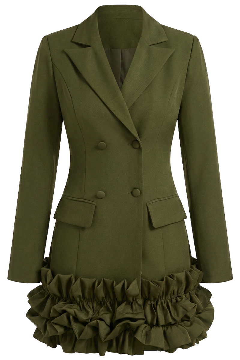 Nerra Form je statement sako snažne, precizno oblikovane siluete s izraženim couture karakterom. Strukturirani dvoredni kroj, naglašeni reveri i arhitektonski rezovi stvaraju snažan vizualni identitet, dok dekorativni volan na rubu unosi dozu suvremene dramatike i dizajnerske osobnosti. Dizajniran kao svestran komad, Nerra Form može se nositi samostalno kao sako-haljina ili kao upečatljiv gornji sloj u slojevitim kombinacijama. Idealan je za večernje prigode, evente, modne izlaske i situacije u kojima želite snažan, ali profinjen dojam. Nerra Form spaja autoritet tailoringa i kreativnu slobodu suvremenog dizajna, čineći ga modernim komadom koji nadilazi klasične kategorije.
