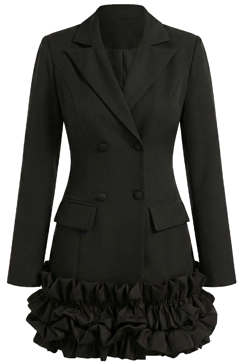 Nerra Form je statement sako snažne, precizno oblikovane siluete s izraženim couture karakterom. Strukturirani dvoredni kroj, naglašeni reveri i arhitektonski rezovi stvaraju snažan vizualni identitet, dok dekorativni volan na rubu unosi dozu suvremene dramatike i dizajnerske osobnosti. Dizajniran kao svestran komad, Nerra Form može se nositi samostalno kao sako-haljina ili kao upečatljiv gornji sloj u slojevitim kombinacijama. Idealan je za večernje prigode, evente, modne izlaske i situacije u kojima želite snažan, ali profinjen dojam. Nerra Form spaja autoritet tailoringa i kreativnu slobodu suvremenog dizajna, čineći ga modernim komadom koji nadilazi klasične kategorije.