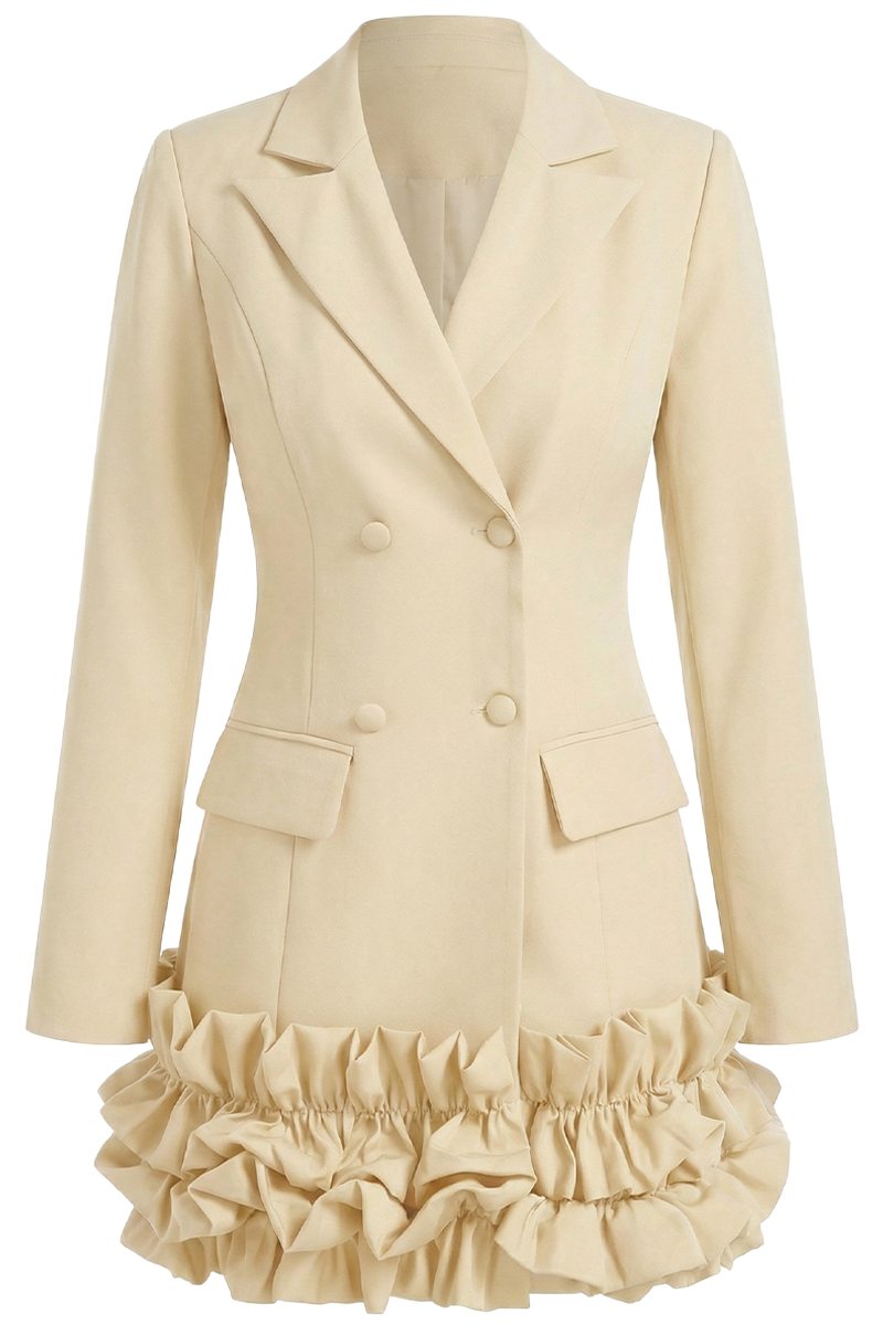 Nerra Form je statement sako snažne, precizno oblikovane siluete s izraženim couture karakterom. Strukturirani dvoredni kroj, naglašeni reveri i arhitektonski rezovi stvaraju snažan vizualni identitet, dok dekorativni volan na rubu unosi dozu suvremene dramatike i dizajnerske osobnosti. Dizajniran kao svestran komad, Nerra Form može se nositi samostalno kao sako-haljina ili kao upečatljiv gornji sloj u slojevitim kombinacijama. Idealan je za večernje prigode, evente, modne izlaske i situacije u kojima želite snažan, ali profinjen dojam. Nerra Form spaja autoritet tailoringa i kreativnu slobodu suvremenog dizajna, čineći ga modernim komadom koji nadilazi klasične kategorije.