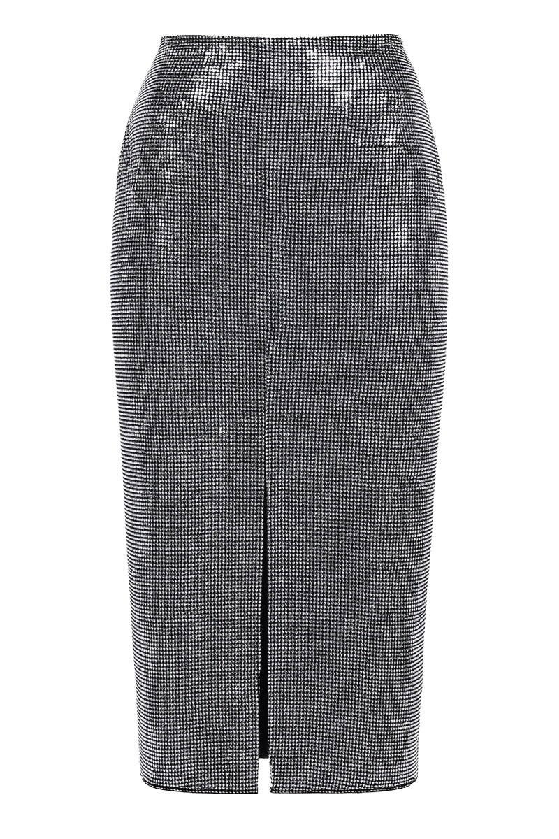 Suknja "Eternal Sparkle" unikatni je komad dizajniran za one koji žele biti u centru pažnje. Izrađena od materijala prekrivenog blistavim šljokicama, ova suknja reflektira svjetlost na najljepši način, stvarajući efekt glamura pri svakom koraku. Pencil krojem, elegantno prati liniju tijela, dok diskretni prorez omogućava lakoću pokreta. Idealna za gala večeri, koktel zabave i svečane prigode.