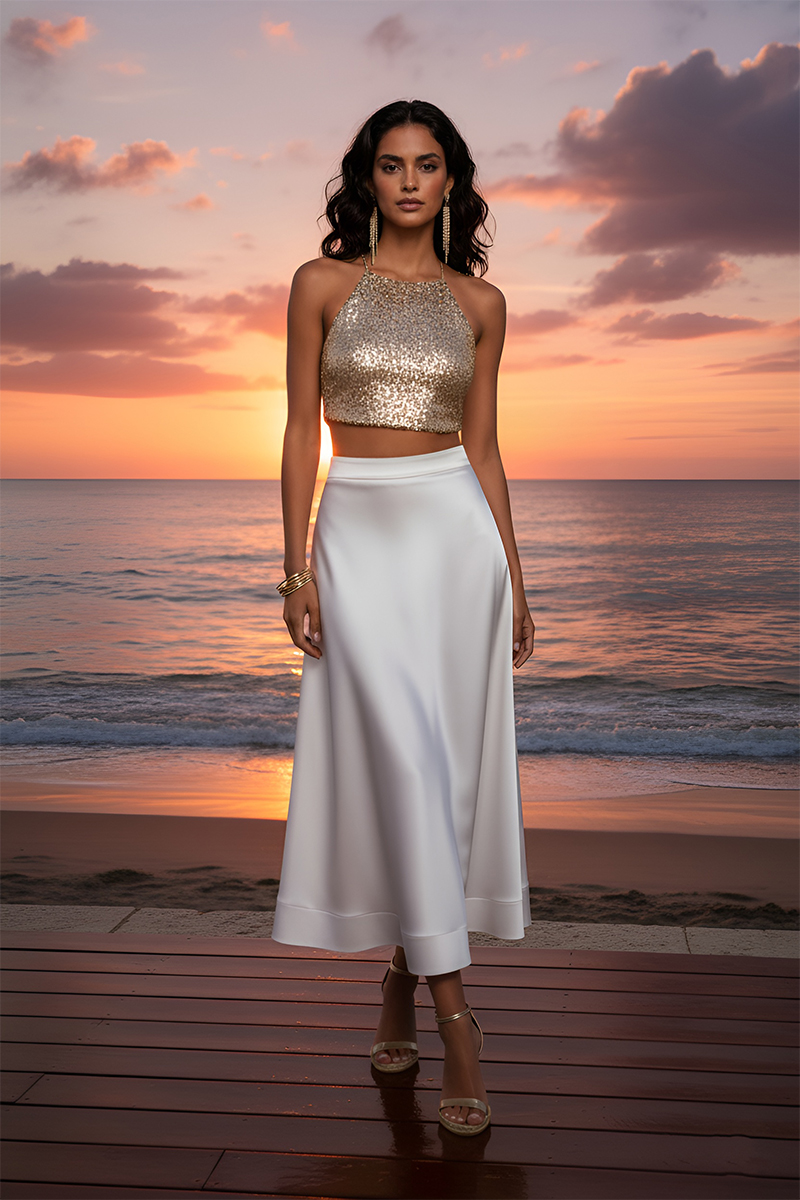 Suknja "Majestic Cascade" donosi spoj elegancije i udobnosti za sve prigode. Njena fluidna silueta i blago padajući kroj stvaraju profinjen izgled koji laska svakoj figuri. Dizajnirana s pažnjom na detalje, ova suknja je savršen izbor za sofisticirane modne kombinacije. Mekana i kvalitetna tkanina koja osigurava ugodno nošenje. Klasičan A-kroj koji ističe struk i omogućava slobodu pokreta. Idealna za svečane, poslovne i casual kombinacije.