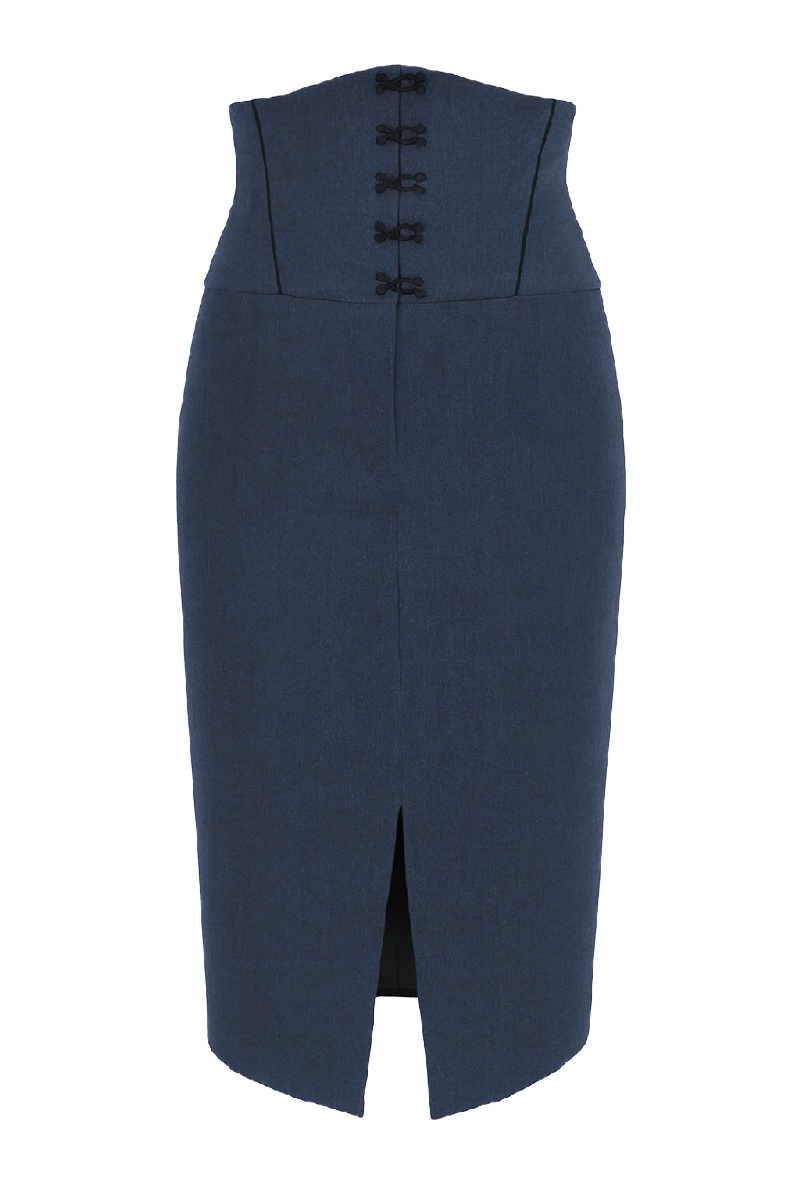 Suknja "Metropolitan Lines" utjelovljuje savršeni spoj klasičnog kroja i suvremenog dizajna. Ističe se preciznim krojem visokog stuka koji prati liniju tijela, dok decentan prorez na prednjoj strani dodaje dašak modernog stila i ženstvenosti. Sa zatvaračem na stražnjoj strani i detaljima koji osiguravaju besprijekorno pristajanje, ova suknja je idealan izbor za poslovne i svečane prilike. Idealna uz elegantne bluze ili sakoe za profesionalan i moderan izgled.