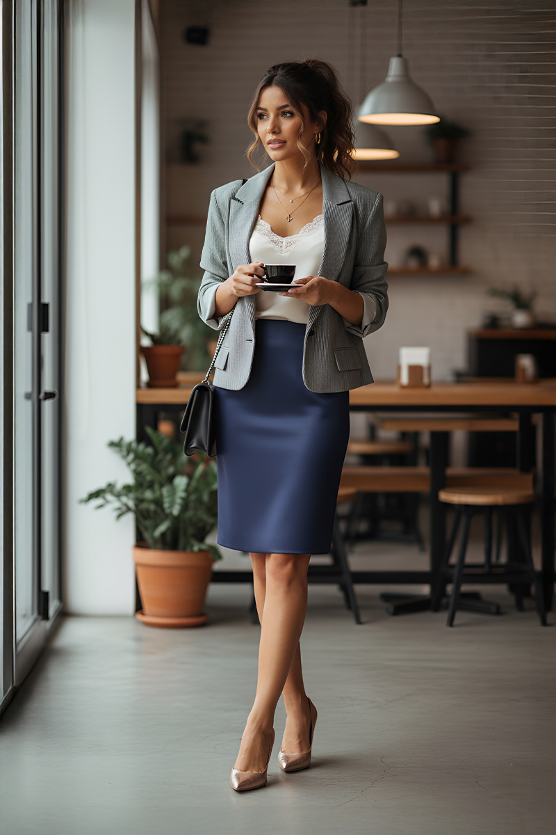 Suknja "Classic Perfection" ističe se svojom sofisticiranošću i svestranošću, prilagođena različitim prigodama. Njena čista linija i ugodan materijal pružaju savršeno pristajanje, čineći je idealnim izborom za svakodnevne, poslovne i večernje kombinacije. Dodajte svojoj garderobi bezvremenski komad koji kombinira jednostavnost i eleganciju.