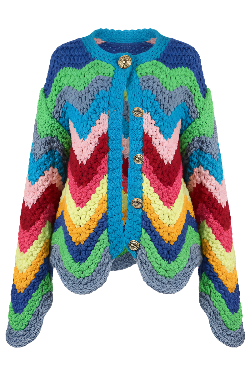Vesta "Rainbow Harmony" unikatni je ručno izrađeni komad koji donosi veselje i toplinu svakodnevnim kombinacijama. Njezin šareni uzorak u duginim bojama izrađen je od visokokvalitetne vune, pružajući udobnost i stil tijekom hladnijih dana. Ova vesta idealan je izbor za one koji žele istaknuti svoju osobnost i unijeti radost u svoj outfit. Ležerni kroj s gumbima za zakopčavanje. Vesta "Rainbow Harmony" savršeno spaja ručni rad i jedinstveni dizajn, čineći svaki vaš dan posebnim. Dostupna samo u jednom primjerku.